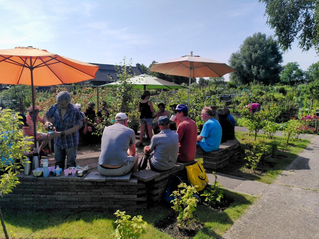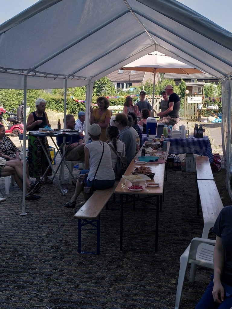 De viering van ons 40 jarige jubileum begon in de ochtend met een rondleiding op ons tuincomplex voor buurtgenoten en andere geïnteresseerden. In verband met de warmte was er een limonade bar aanwezig.