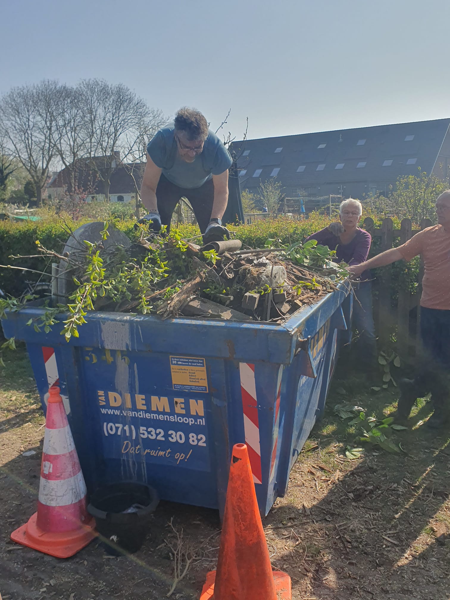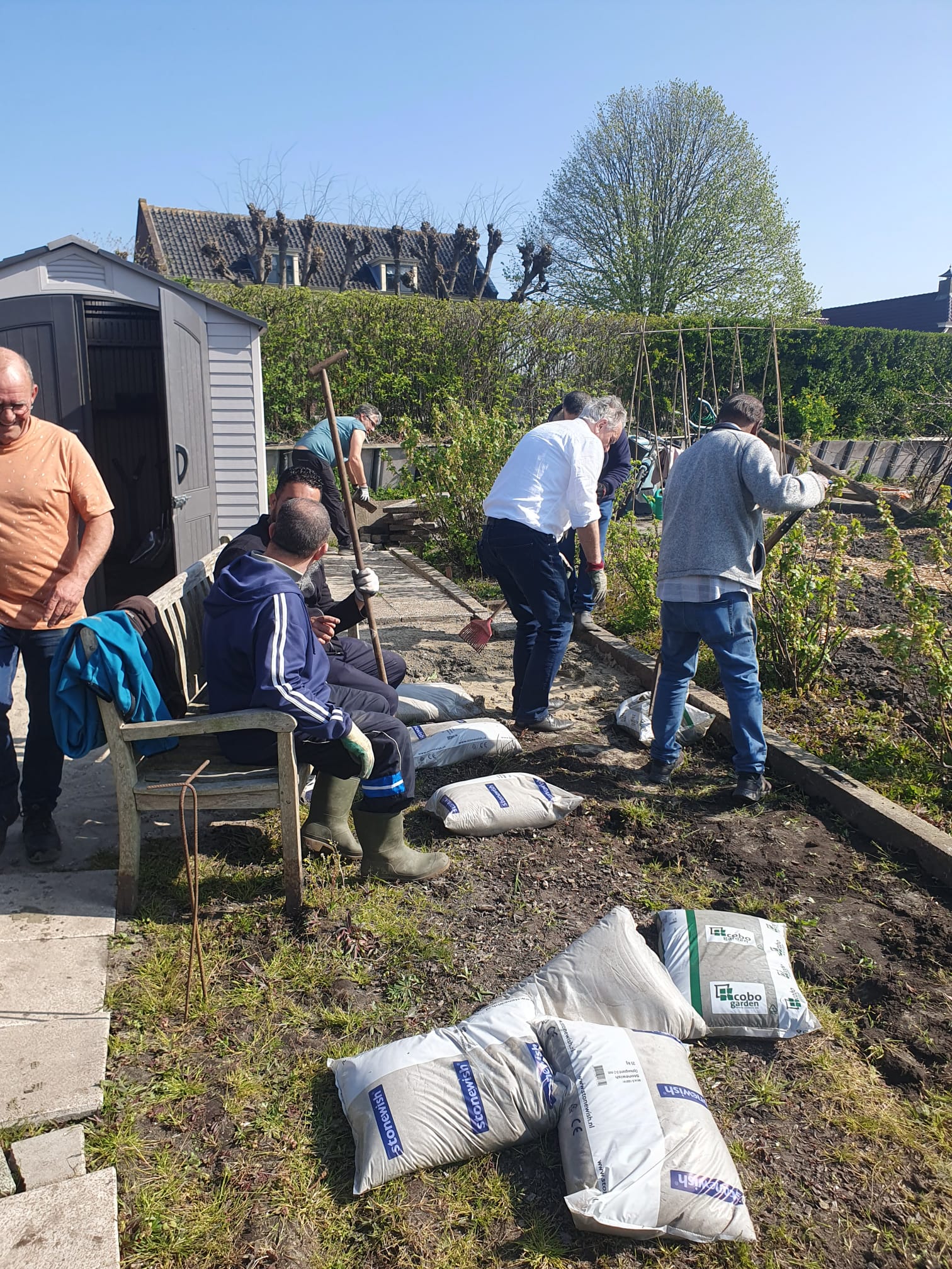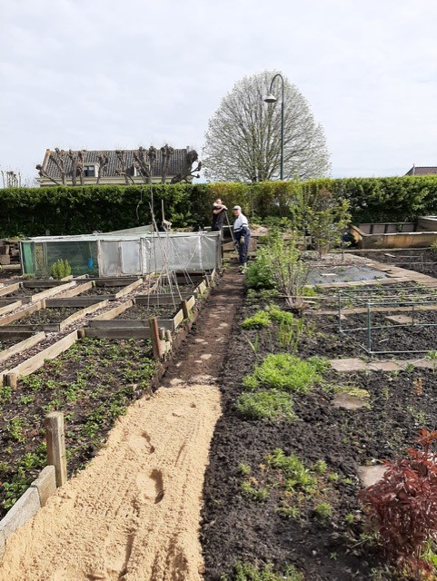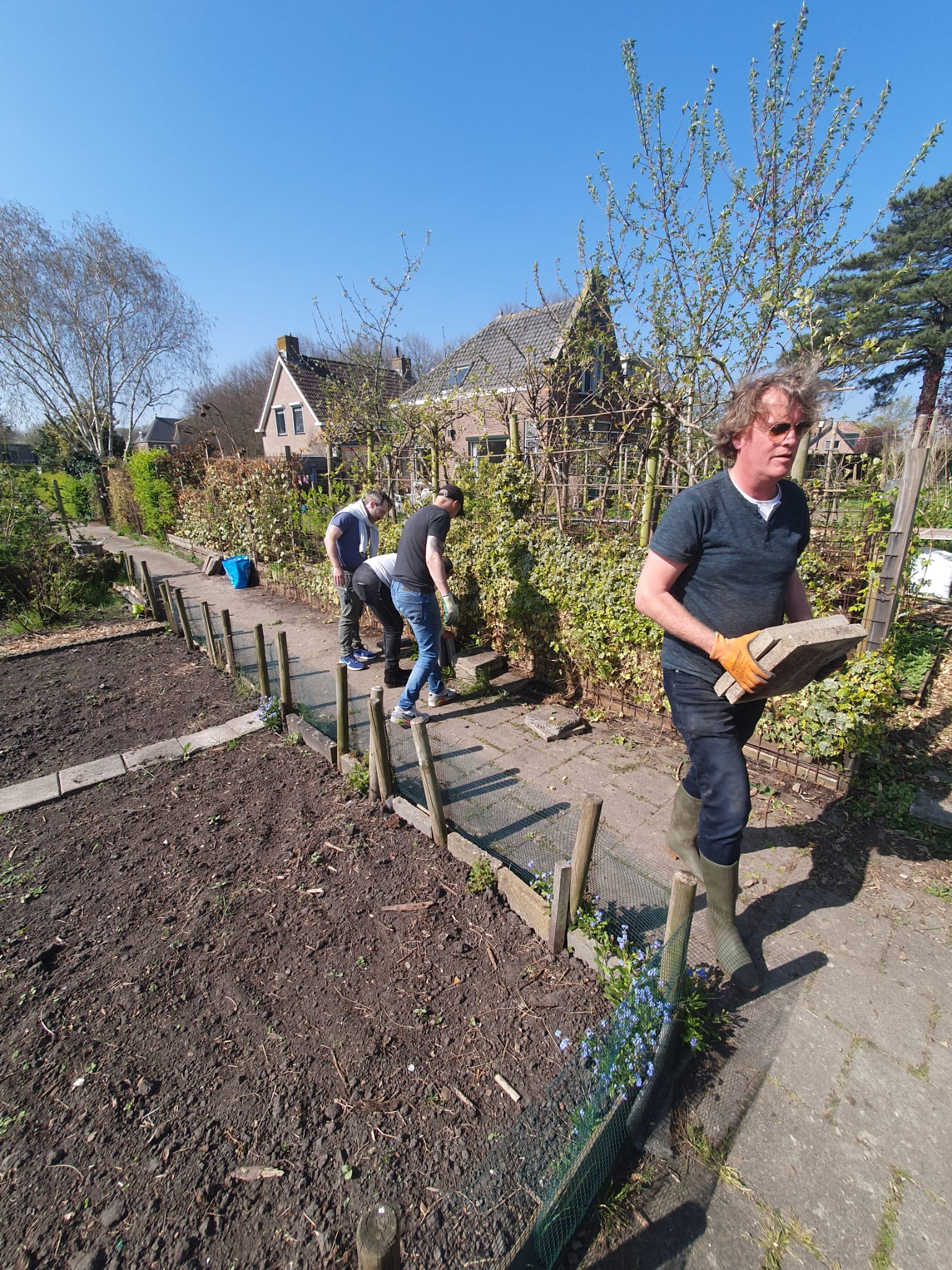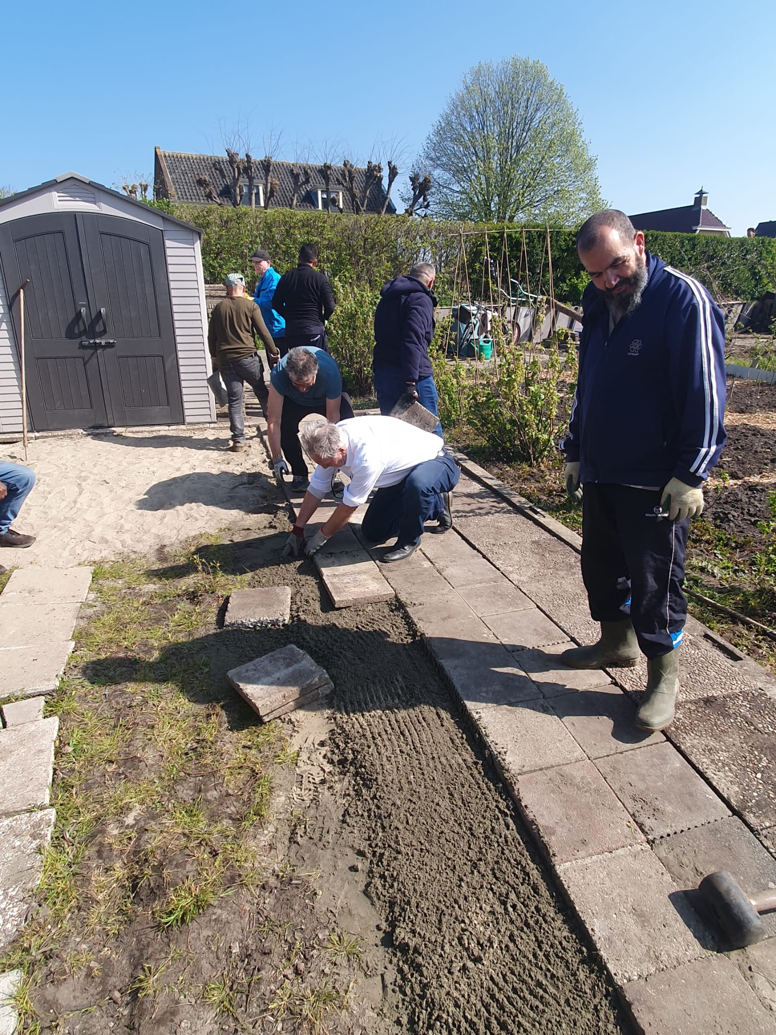 Dit was de eerste onderhoudsdag van het tuinjaar 2025 met een grote opkomst van onze leden. Onder een heerlijk zonnetje is er weer hard gewerkt aan o.a.: het toppen van een heg, het leegruimen van een van de tuinen, veel ander afval verzamelen tot de container toch echt vol zat, het aanleggen van het tegelpad op de gemeenschappelijke tuin en het (weer) verplaatsen van alle tegels op een stapel naast het schuurtje. Tot slot kreeg het nestje met muisjes nog een eigen plekje tussen de allerlaatste tegels.