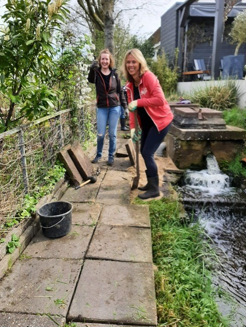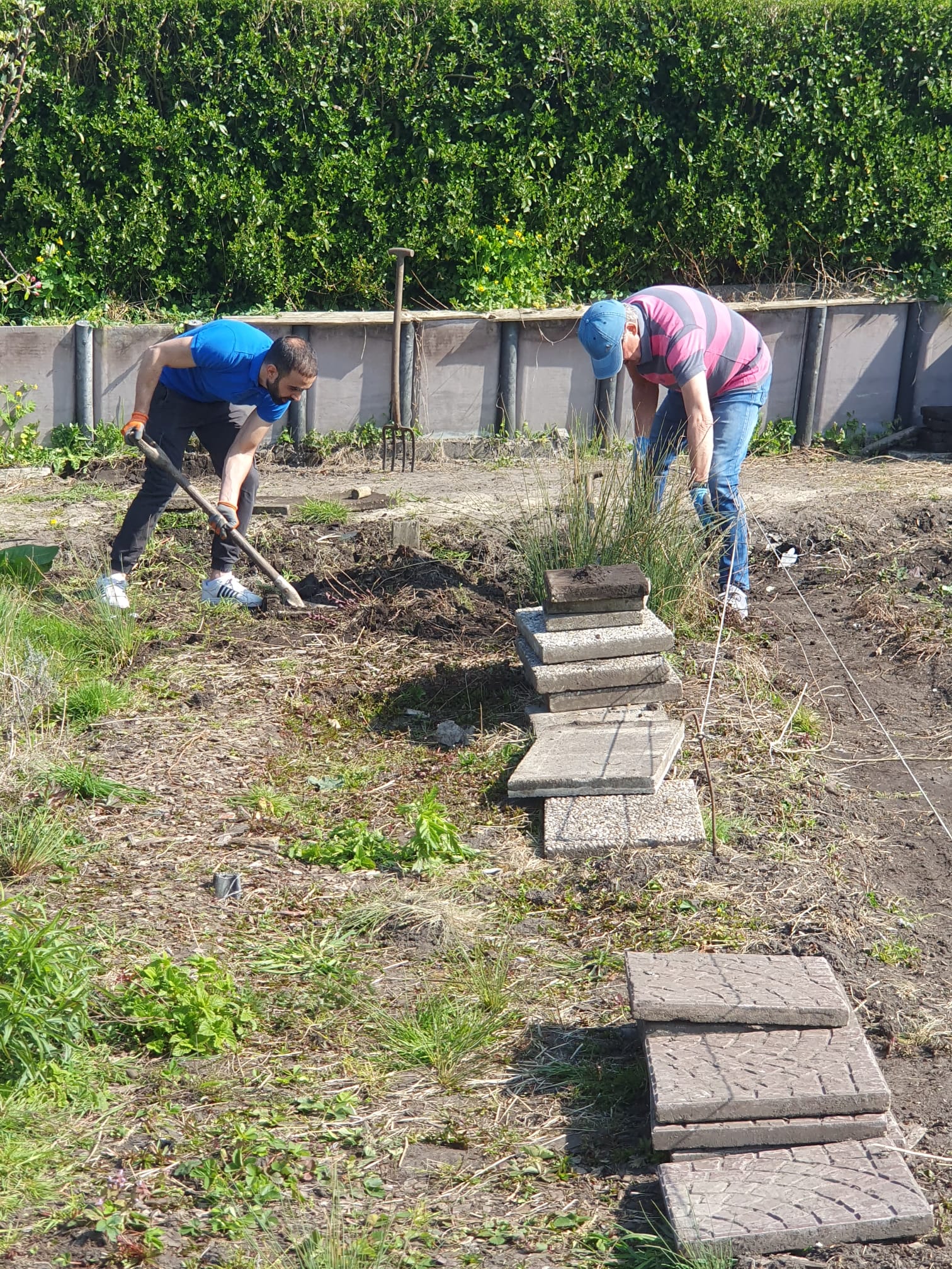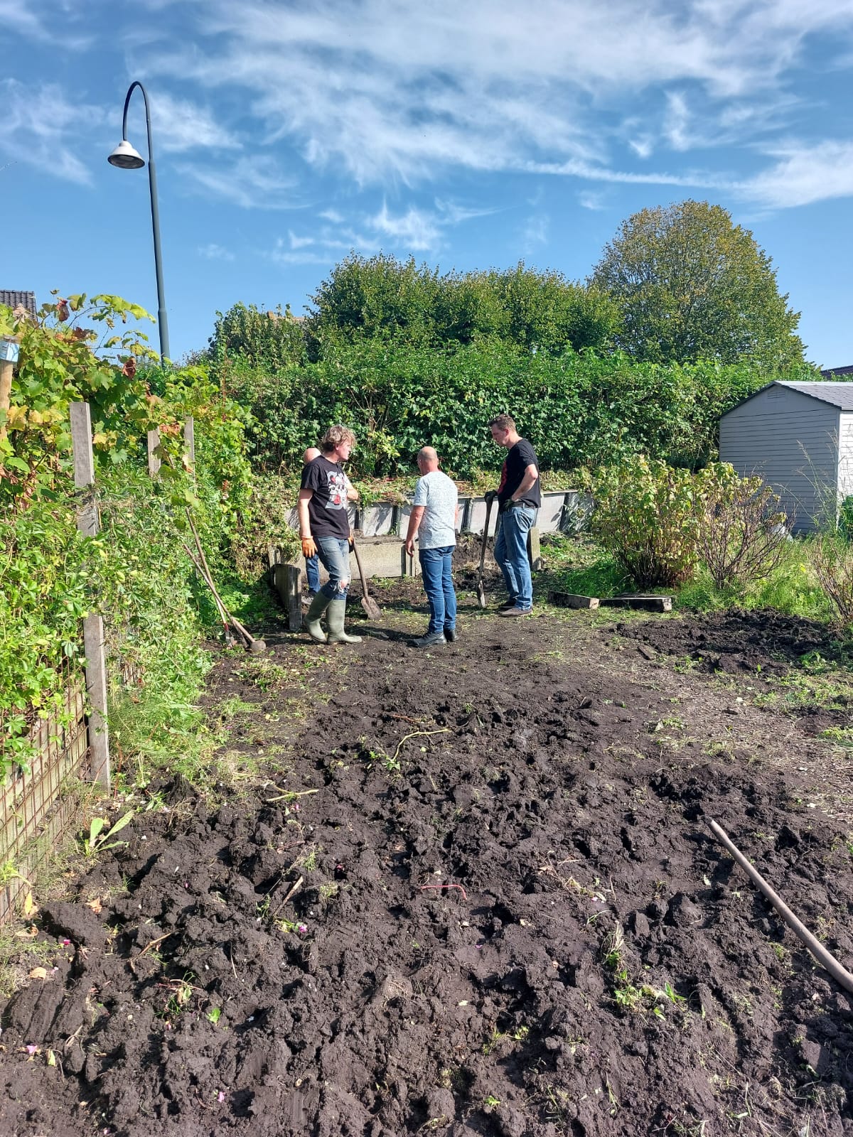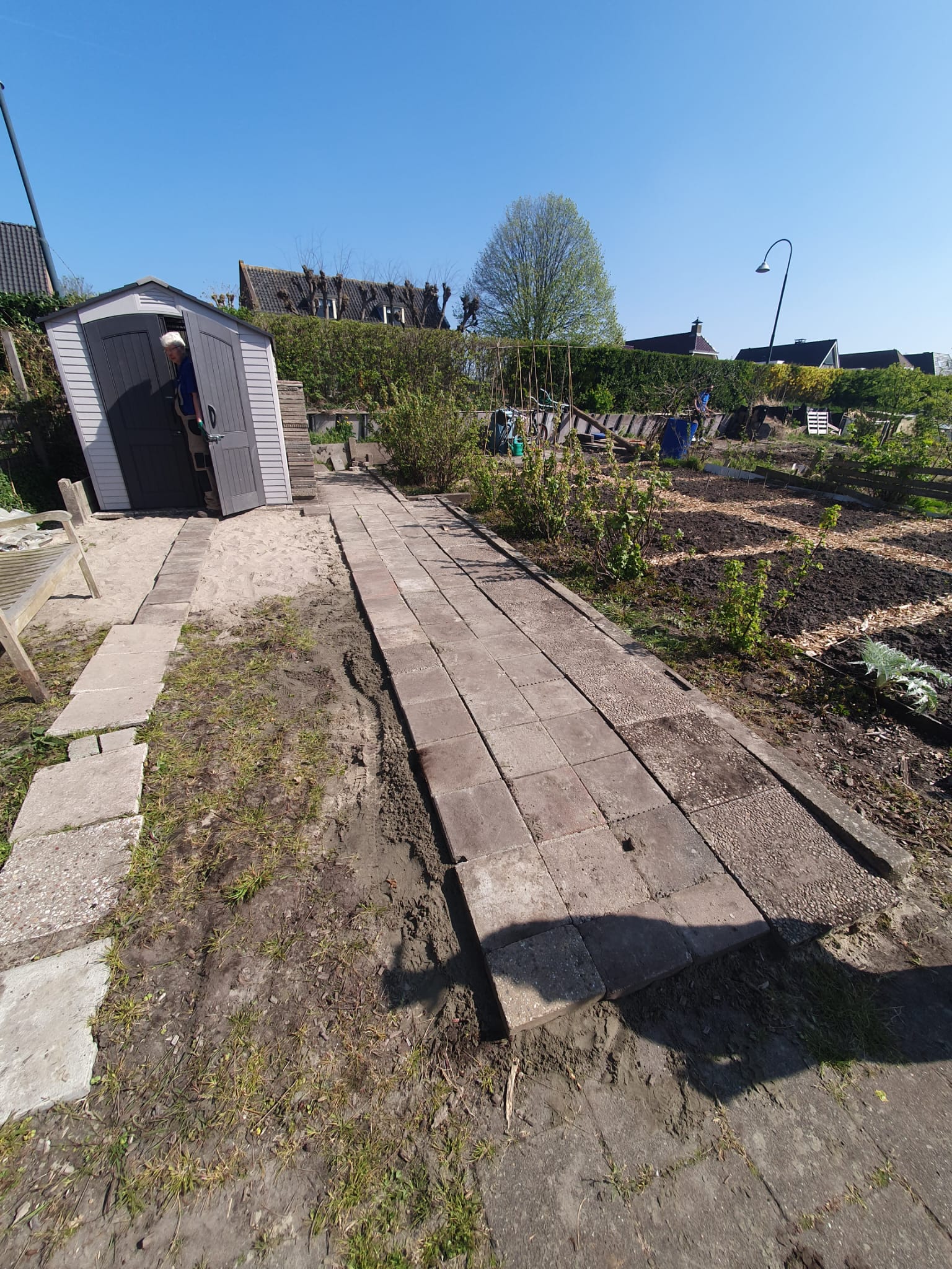 Dit was de eerste onderhoudsdag van het tuinjaar 2025 met een grote opkomst van onze leden. Onder een heerlijk zonnetje is er weer hard gewerkt aan o.a.: het toppen van een heg, het leegruimen van een van de tuinen, veel ander afval verzamelen tot de container toch echt vol zat, het aanleggen van het tegelpad op de gemeenschappelijke tuin en het (weer) verplaatsen van alle tegels op een stapel naast het schuurtje. Tot slot kreeg het nestje met muisjes nog een eigen plekje tussen de allerlaatste tegels.