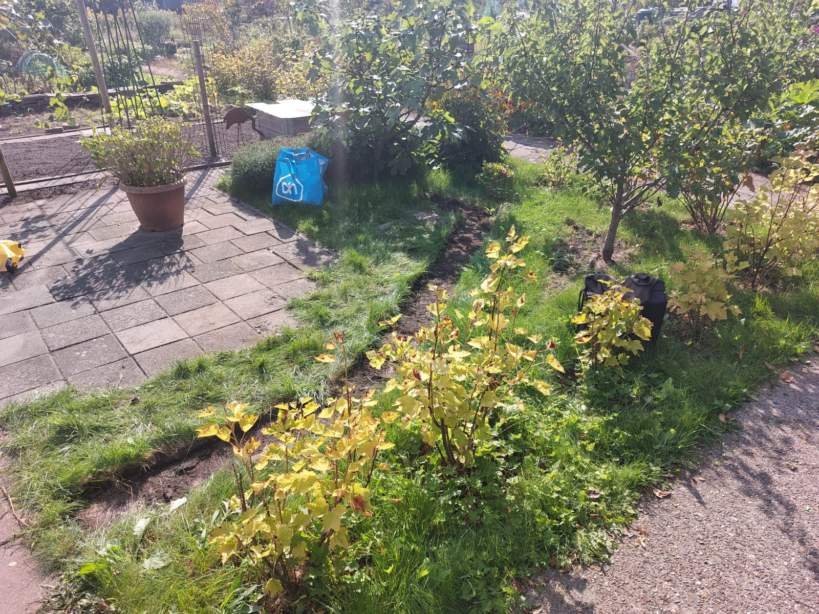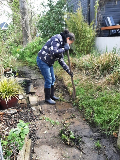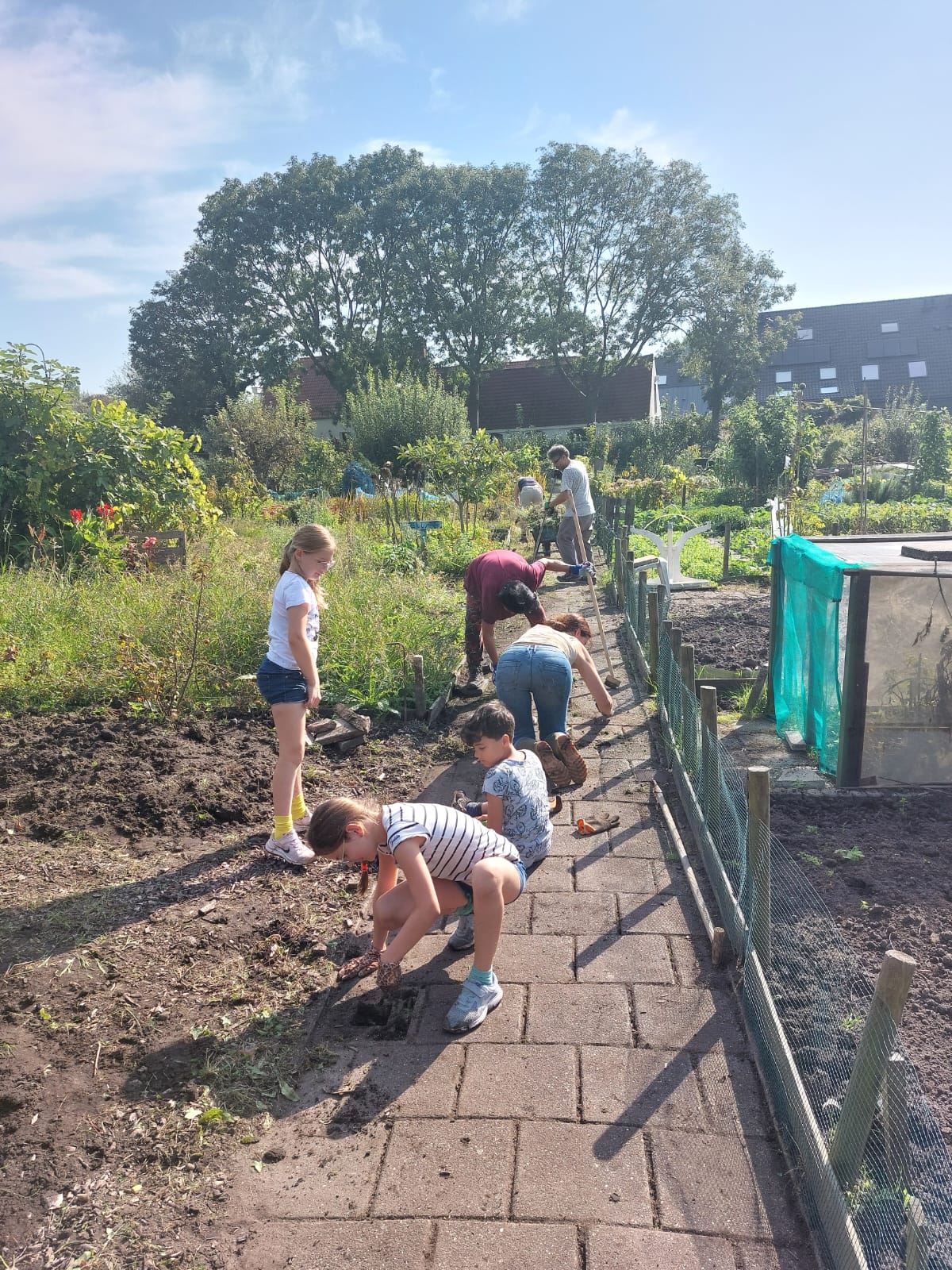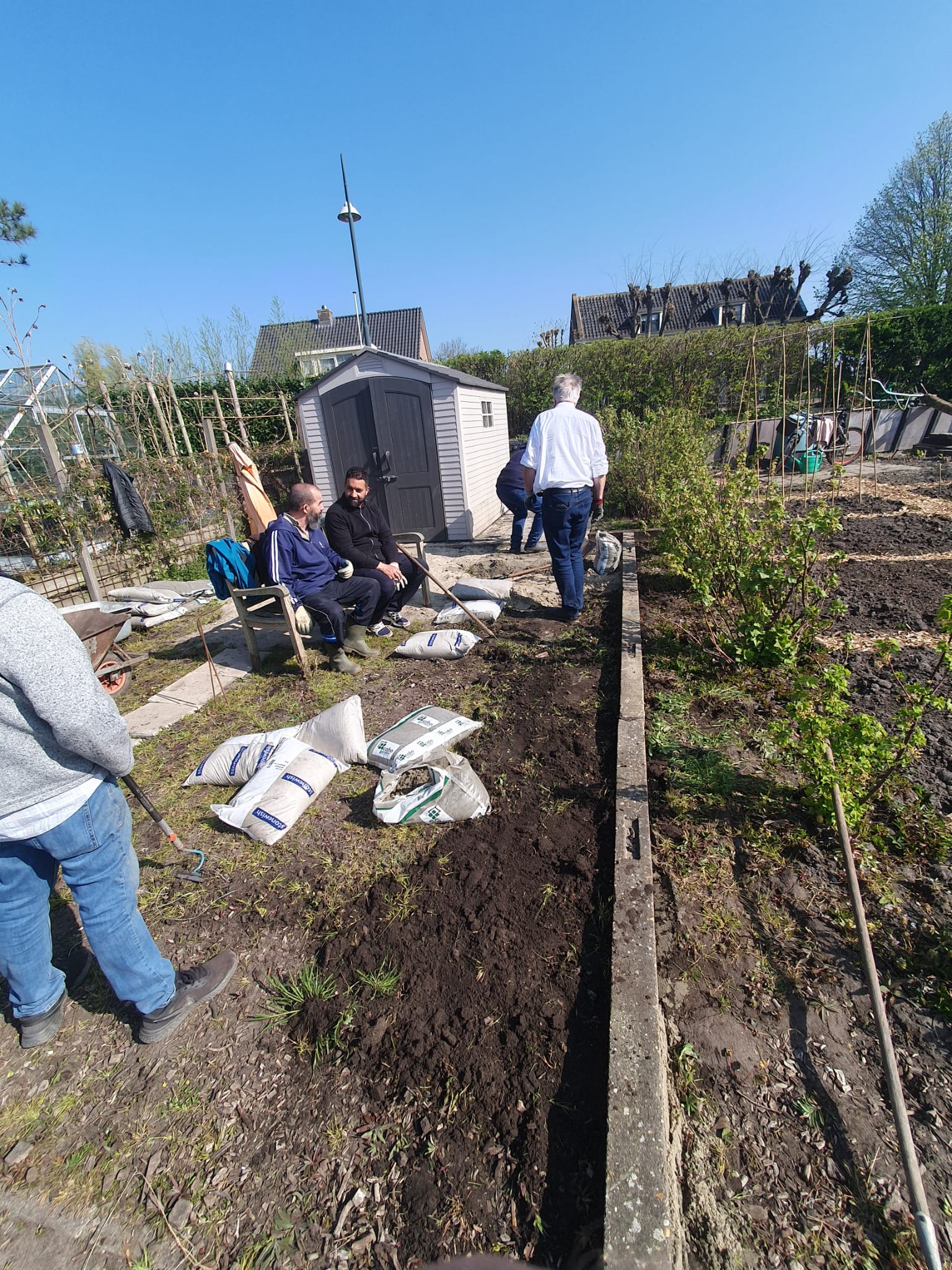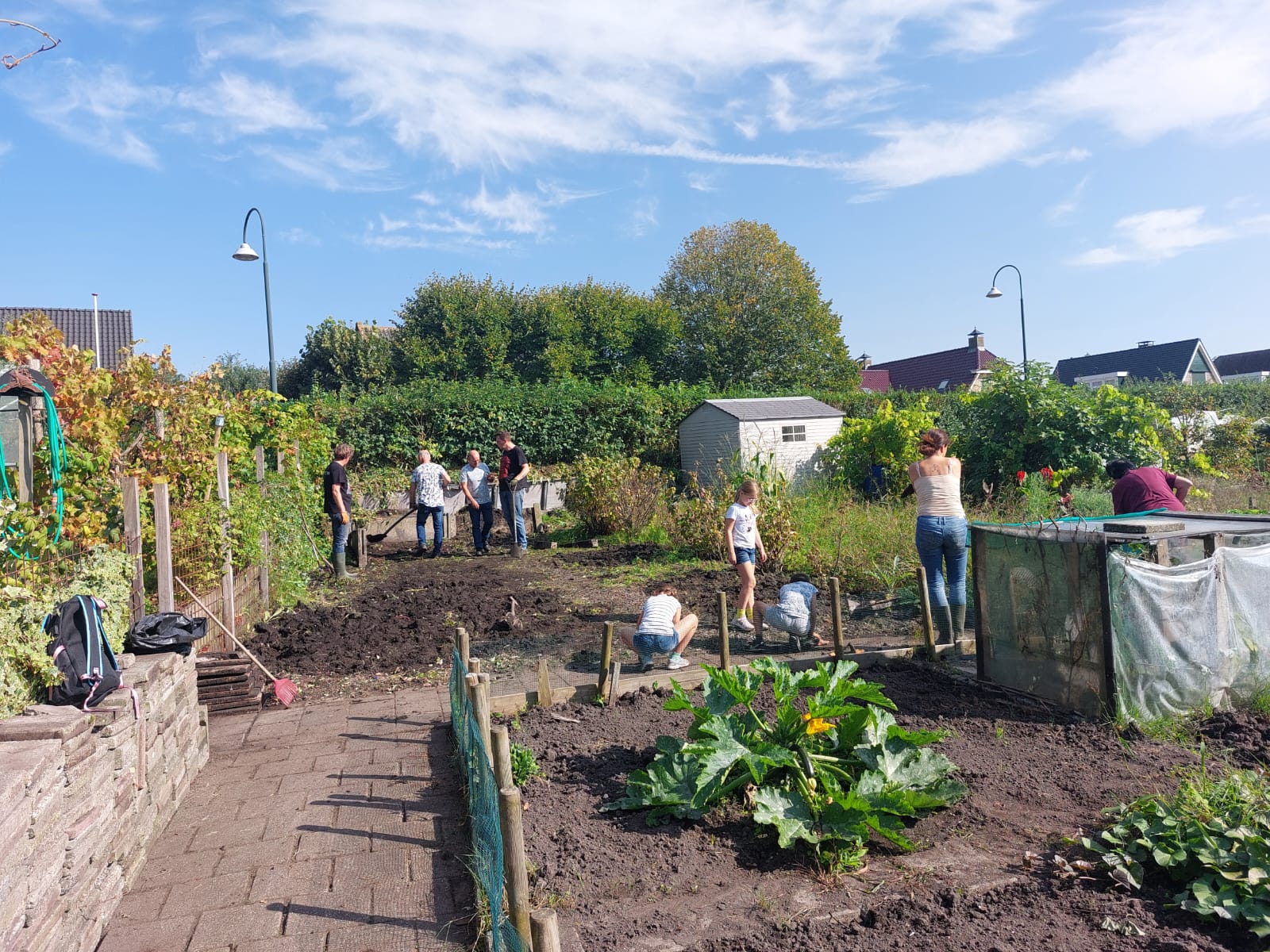 Dit was de eerste onderhoudsdag van het tuinjaar 2025 met een grote opkomst van onze leden. Onder een heerlijk zonnetje is er weer hard gewerkt aan o.a.: het toppen van een heg, het leegruimen van een van de tuinen, veel ander afval verzamelen tot de container toch echt vol zat, het aanleggen van het tegelpad op de gemeenschappelijke tuin en het (weer) verplaatsen van alle tegels op een stapel naast het schuurtje. Tot slot kreeg het nestje met muisjes nog een eigen plekje tussen de allerlaatste tegels.