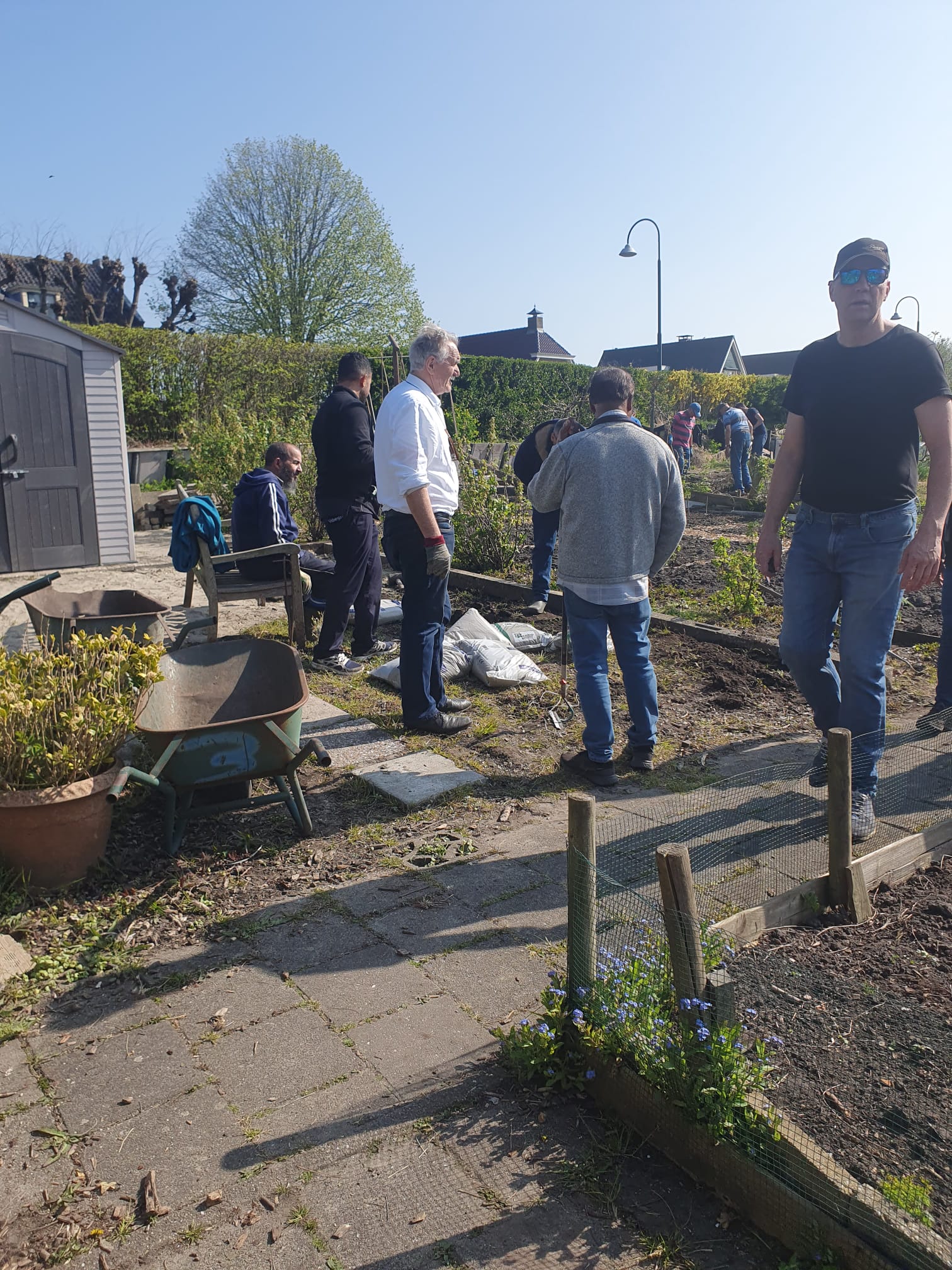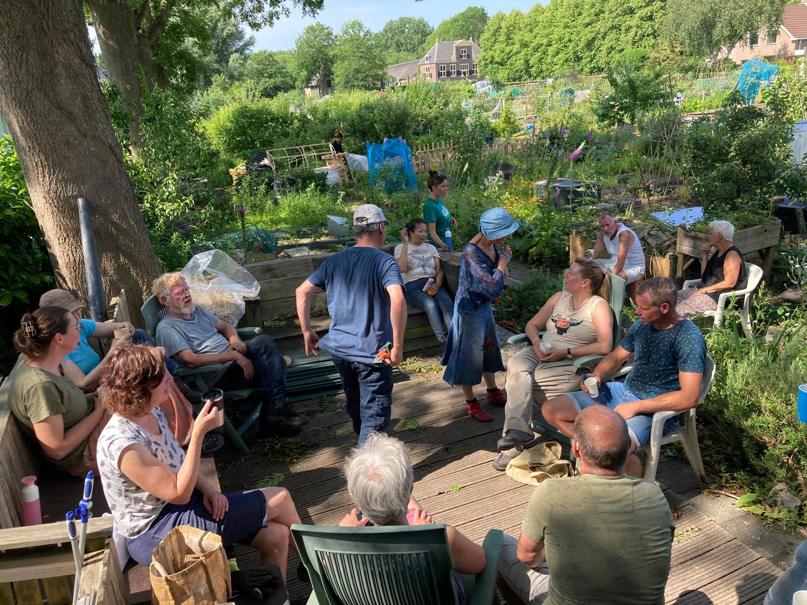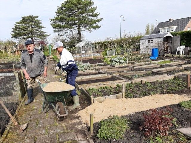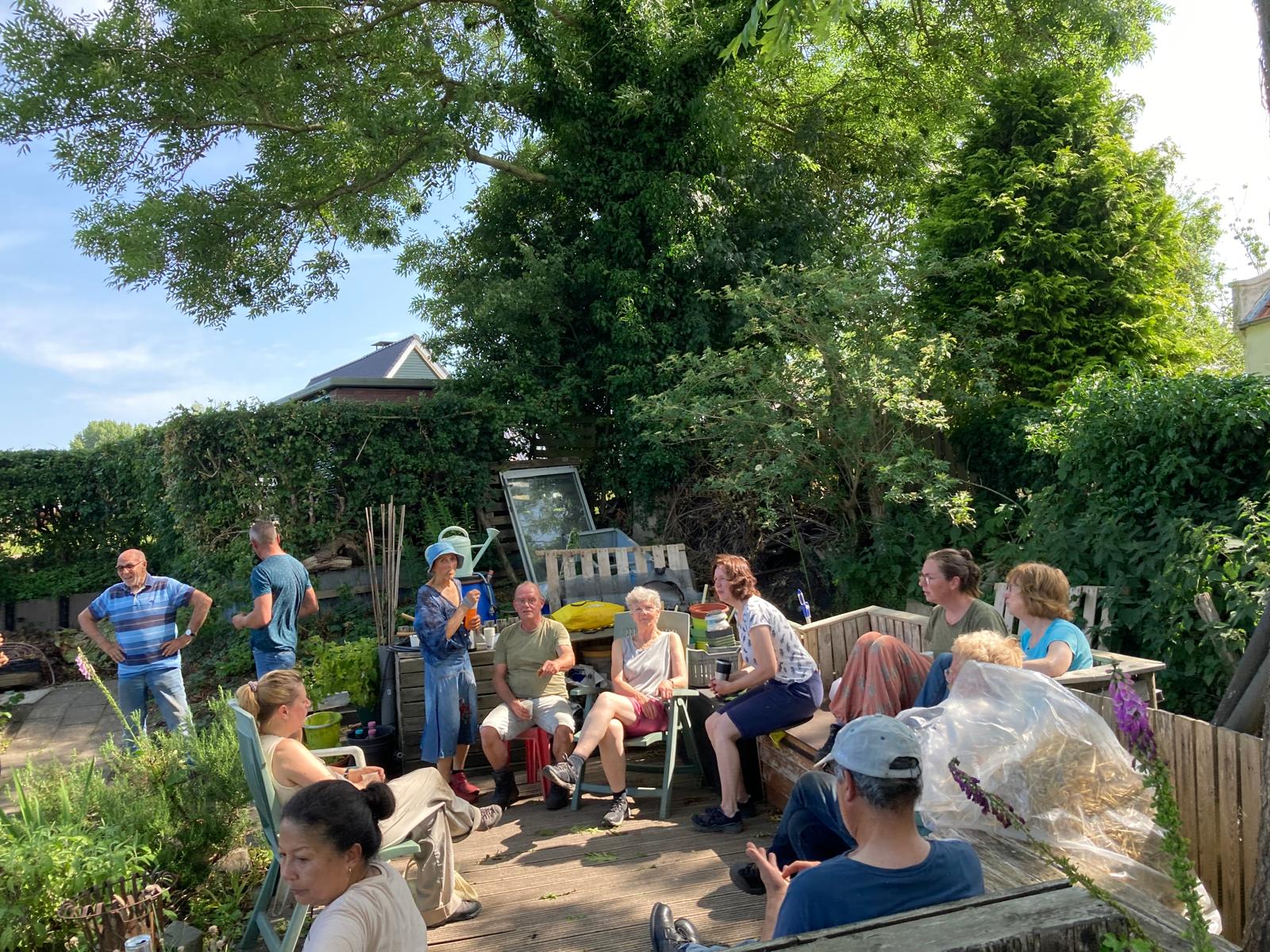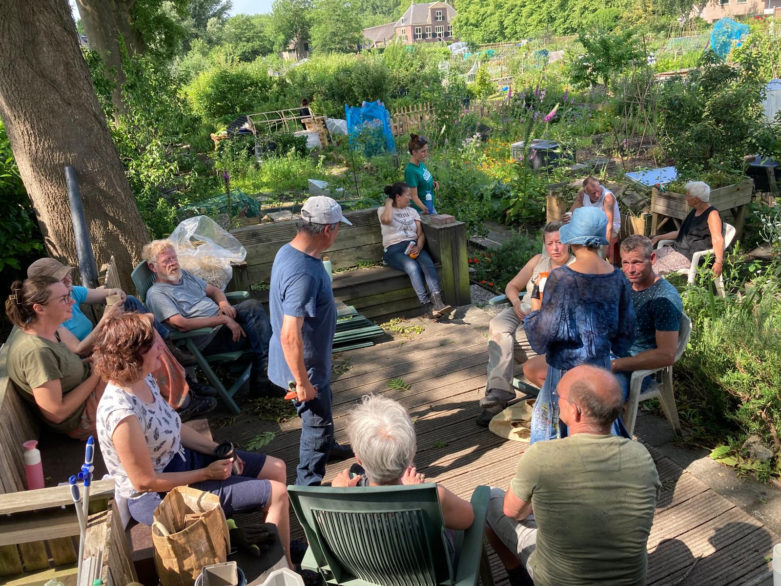 De eigenaren van 19 tuinen en nog meer mensen kwamen zaterdag helpen op de 2e onderhoudsdag van dit tuinseizoen. Ondanks de warmte toch veel kunnen doen. Sommige tuinders waren er al om 8.00 uur om voor de hitte een klus te klaren.